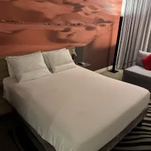 We had a great time here. The room service menu is great and we ordered a lot from it and didn't leave the hotel - we chilled, looking at the wonderful view of the water/city side, and ate room service for all our meals.The staff are lovely and welcoming and the water view is nice. We were happy with our stay. The wall is really cute, with no painting, but a desert photo as a full-wall mural.