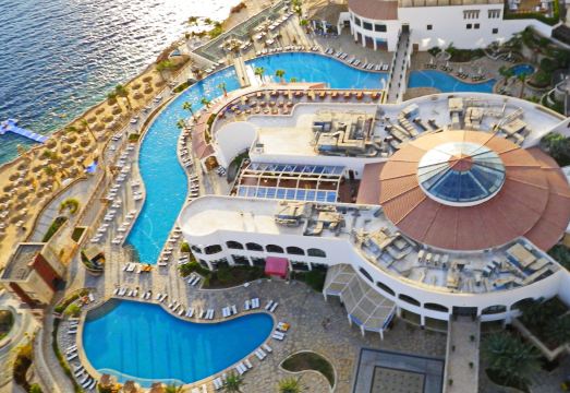 The buffet was genuinely delicious — definitely above average by Egypt standards. If you’re into diving, you don’t even need to take a boat out. Right on the hotel’s beach, there’s a free coral reserve where you can see coral, jellyfish, tons of colorful fish, and even huge schools of fish swirling around you. The hotel also has its own diving center for deep dives.