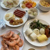 The hotel's breakfast is pretty good, with a wide variety of fresh ingredients, and fresh food is served quickly after the dishes are empty.