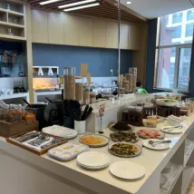 Excellent location, just next to the train and subway station exit. Service is excellent, giving us water us we were checking out as the weather was hot.
