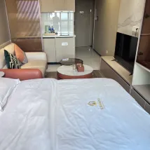 I was very satisfied with my stay. The environment was great, the front desk service was excellent, check-in was fast, and the bed was very comfortable. The location was easy to find and convenient for transportation. It's right next to Exit C of Metro Line 11, Qiaotou. It's very close to the airport and takes a direct subway ride in 10 minutes.