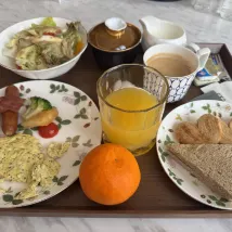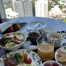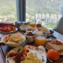 Have nice tea set and breakfast! Good view overlooking the city at 30F