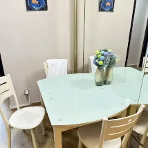 The apartment is quite spacious, conveniently located next to the subway, and in a nice location with many restaurants nearby. Some of the facilities and decorations are not usable and are too old, but the sanitation is acceptable, with an automatic water-sprinkling and heated toilet seat.