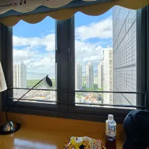 The room environment is good, with complete and clean facilities. Being on a high floor, the view is great. The owner thoughtfully placed pig dolls, offering excellent value for money and a convenient location right above the Kkoen mall on the first floor. The room comes with a fridge, washing machine, and microwave. Tingting at the front desk was very helpful and even brought things up to my room.
