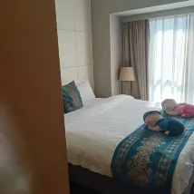 The hotel's location is excellent, right above KK ONE mall. If you're planning to visit the Mangrove Nature Reserve or Happy Harbor, it's incredibly convenient as it's just one metro stop away. Downstairs, there's a fantastic variety of food options, making it very convenient. The hotel's front desk entrance is on the 7th floor, apartment C2, next to the Agricultural Bank of China (look for 'K'). If you're a first-time guest, it's a good idea to call the front desk beforehand; the staff will guide you and come down to the lobby to pick you up. Overall, it was a superb experience, and I highly recommend staying here.