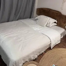The room was beautifully decorated, and the bedding was freshly laundered. As someone with sensitive skin, I slept comfortably all night without any irritation, which I truly appreciated! Plus, there are five super cute puppies downstairs!