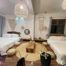 The guesthouse's common areas are exceptionally well-designed, offering a perfect space to unwind, take a short break, or socialize with new friends. The overall ambiance is relaxed, stylish, and incredibly welcoming, truly an ideal stopover during your travels.