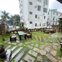 The outdoor space, featuring a charming courtyard and a lush lawn, is incredibly photogenic and a delightful spot to unwind. The indoor rooms are equally stunning and perfect for photos – I found myself snapping pictures non-stop. The bed was large and exceptionally comfortable, and the entire environment was pristine.