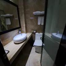The room is clean and nice. The bathroom is also good. Super conveniently located opposite the Metro Exit. Close to the Islamic center and halal food options. I would recommend the Hotel 🙏🏼