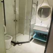 The shower is broken, it sprays water once it is turned on, the glass door of the bathroom cannot be closed, the water in the sink is too small, it is too noisy, someone shouted in the corridor at night,