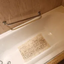 The room was disgustingly filthy, beyond anything I could have imagined. I was exhausted from my business trip and was about to draw a bath. Luckily, on a whim, I decided to lift the mat under the bathtub and peek underneath. It was completely covered in mold – it looked like it had been there for ages!