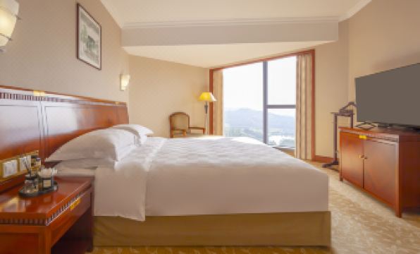 Facilities: The hotel has its own parking, both above ground and underground. I recommend parking above ground, as the entrance and exit of the underground parking are quite narrow and might challenge your driving skills. As soon as you enter the lobby, you're greeted with the ambiance of a five-star hotel. Although it's a bit old, twenty years ago this hotel was definitely one of the best in Shenzhen. There's a 7-Eleven right in the lobby. The room design is traditional five-star, but the facilities are quite dated, though everything you need is available.
