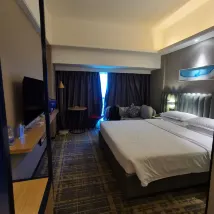 I booked this hotel for an early flight the next morning. Its location is quite convenient, with plenty of fruit shops, restaurants, and a shopping mall nearby for dining and shopping. However, the cleanliness was a significant issue. The towels were dusty, and I started sneezing immediately after wiping my face with one. To make matters worse, I woke up the next morning with over a dozen bumps all over my body. I sincerely hope they address and significantly improve their hygiene standards.