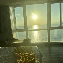 The front desk kindly gave us a complimentary upgrade to a balcony room. The views were fantastic, and we could enjoy the sunset right from the floor-to-ceiling windows. Downstairs, there's both a Western and a Cantonese restaurant, and the food was fresh and delicious. There was a birthday celebration with fireworks in the evening, which created a wonderful atmosphere. While the location is truly excellent, hailing a taxi can be a bit inconvenient, as you might have to wait a while for a car. It would be much better if you're traveling by car.