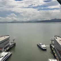 Overall, it was a good experience. Initially, it was a bit tricky to find the parking lot, but once we got familiar with the area, it became quite convenient. The front desk even upgraded us to a room with a direct sea view, which was fantastic! 👍🏻 The room's layout reminded me a bit of a cruise ship. Since we were heading to Hong Kong the next day, the hotel's location was incredibly convenient for catching a ferry – we just needed to head downstairs about 20 minutes before departure.