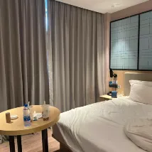 I highly recommend this hotel! The facilities are absolutely top-notch. Each room is equipped with smart lighting, high-speed WiFi, a fully functional bathroom, a mini-bar, and a comfortable sofa. Despite its central location, the hotel offers a peaceful environment. The lobby features a chic and elegant design, and the corridors have sound-absorbing carpets, ensuring excellent soundproofing. You can enjoy city night views from the window, and the indoor greenery adds a refreshing touch. My overall stay was fantastic, offering incredible value for money!