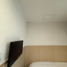2. **Power Outlets:** There are too few power outlets: only one by the bed, one obstructed behind the TV, and one in the bathroom. I had to charge my power bank in the bathroom overnight. To charge two phones simultaneously, we had to move the small TV. If you have more devices, it becomes extremely inconvenient.