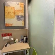 1. **Desk Space:** The desk is far too small. If you need to eat in the room during a two-night stay, it's completely inadequate, not even enough space for one meal, let alone personal items like skincare products or power banks.