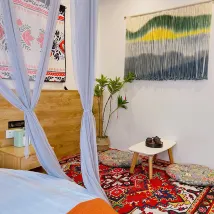 This B&B really surprised me. Not only is it hygienic and clean, every part of the B&B is beautiful. There are also many retro literary and artistic ornaments placed at the stairwell. The room I booked has a living balcony on the 3rd floor where I can dry my clothes. The flowers in the yard from the top are really amazing and special. The first floor is a public area and cafe. It has a literary and artistic atmosphere. It's very relaxing to sit and read a book for a while. It's really amazing to live here. The price-performance ratio is very high and it's worth it.