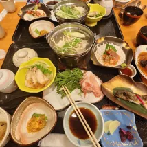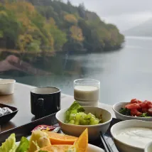 Dinner and breakfast are both well-prepared and varied, the lake view is the best, the hot spring facilities are good, the room size and facilities are all of a high standard,