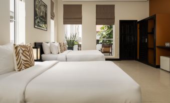 This cute little hotel is very welcoming, homely and has that lovely friendly vibe. Staff are lovely and very helpful, great food, the best smoothies and rooms are big and nicely furnished . Hotel is in a very central area so close to everything, there is always a tuk tuk at the ready , staff will call it for you. Pool was lovely for a swim. We were upstairs along with four other room with a mix and mingle balcony where we sat most late afternoon for a drink A great place to stay Thankyou staff
