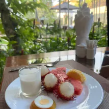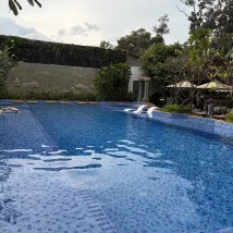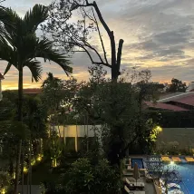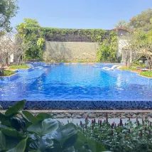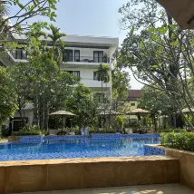 The hotel is very distinctively decorated and has a beautiful swimming pool. The location is very good. There are delicious restaurants, coffee shops and juice shops a few minutes south. This hotel is especially suitable for four people to travel. There is a large living room for entertainment together, and it is close to the swimming pool. The balcony has a beautiful view. The one-bedroom and one-living room I stayed in this time is close to the road. The night in Siem Reap is very quiet and basically did not affect my sleep. The breakfast is delicious. I like cream tomato soup and coconut milk sago very much. The downside is that the bath water is hot and cold. There is an induction cooker and a microwave in the room, but there is no washing machine that tourists need.