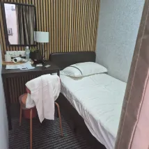 Stayed in single cabin with shared bathroom. Was hoping that slippers were provided. Toilets were occasionally not flushed. Living area was rly cosy and staff were really responsive!
