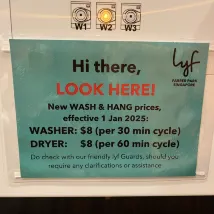 Response from Property: Hi Kyoka2302, Greetings from lyf Farrer Park Singapore!-- Thanks for taking the time to give us your feedback about your recent stay, and we are glad that you enjoyed it! – We are thrilled to learn that you like our location in the unique and vibrant Farrer Park neighbourhood. We are indeed fortunate to be so strategically located due to our proximity to City Square mall where our guests can find a variety of eateries and a supermarket, and having the train station just a stone’s throw away makes travelling around our city-state convenient. - I understand your concerns regarding the cost of using the washing machine and dryer.-- Our laundry facilities are managed and maintained by an external vendor, and we will certainly pass on your feedback to them. We are always looking for ways to improve the value and convenience we offer to our guests, and your insights are valuable in guiding these efforts.-- Our doors are always open, and we look forward to welcoming you back here for your next adventure!-- Cheers, lyf Guard Team