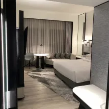 Newly refurbished rooms, great location for eating and shopping, fun for staycation. Booked a One bedroom suite for a separate living room. Booked room with executive lounge access which had a small selection of food for breakfast and dinner. Comes with separate toilet at the living room.