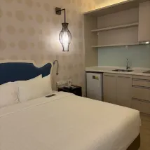 The room was large and comfortable, though it felt weird to have a kitchenette with absolutely no utensils, cutlery or crockery. Bed was comfortable, but some furniture were showing signs of wear and tear. The shower had good water pressure but the drainage system constantly failed, causing water to accumulate.