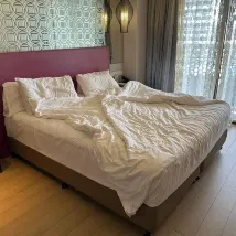 For the rest of our stay, we refrained from using the air conditioning. We allowed the room temperature to gradually equalize with the outdoor temperature and relied on the open balcony door for ventilation. While this greatly improved the situation, our belongings still felt damp every morning. To mitigate this, we ended up airing out our duvet on the balcony in the sun daily, which made a significant difference in comfort.