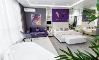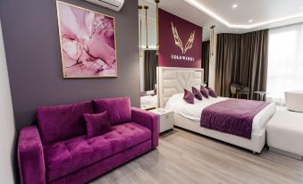 The apartment has everything for your perfect rest: a luxurious king-size bed, a cozy living room or an elegant seating area, a plasma panel with satellite TV, a coffee machine and a tea station for an invigorating morning, a split system, a refrigerator, a hairdryer, a safe, dishes, as well as soft towels, bathrobes, slippers and exquisite cosmetics.