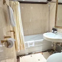 My double bedroom is lovely with a nice view of greenery. The only downside and a major issue to me is that no AC at night, which is not mentioned in the hotel’s description. The staff explained that the AC is centrally controlled and is turned off at night because they assume it’s cool enough. They can only give me a fan.