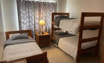 3 bedrooms: 1 bunk bed 1 queen bed and 2 double beds
