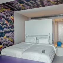 The city view room also had a partial ocean view. The bed was comfortable, and the room was clean and quiet. The breakfast room was large, with a wide variety of options and a pleasant atmosphere. The beach club seemed to be public, with some lounge chairs, but it required walking up a few steps to reach them. The outdoor pool was pleasant and perfect for a drink. The hotel is not located in the city, but the free shuttle bus is very convenient. A taxi is about 6-7 euros. There are other free amenities, such as the sauna, which I didn't try. Luggage storage is available, and you can use the facilities after check-out. Overall, I was very satisfied.