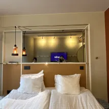 The hotel staff during the night shift was extremely rude. The way she spoke to my family was unacceptable. She raised her voice when we couldn’t complete the check-in for the second room, even though we had already completed the check-in for the first room using the machine. She corrected my accent twice when I asked for a kettle. The room was small and dirty. I’m so disappointed, especially with the service. Also, don’t buy the cold cuts; the price tag is wrong 79 SEK but they charged for 169SEK.