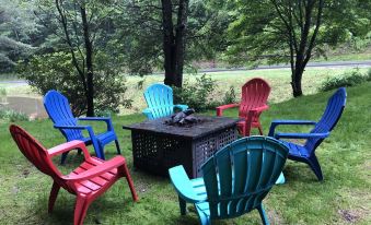 In addition to the bedrooms, living room, kitchen, etc. there's an additional room set aside for office/TV/game play area for business or pleasure but feel free to make the outside mountain air your office as there are many outdoor places provided. We have high speed internet. In the living room there's a game table also with a flip-able table top. Outside there's a deck platform on the back of the house featuring table/chairs to seat up to 6 long with a charcoal grill. A propane fire pit on the side of the house surrounded by Adirondack chairs invites you to many great conversations around the fire with friends and family. Enjoy time on our bench by the pond to hear the quietness of living in the mountains complete with fish, frogs, and many times tadpoles (net and bucket provided for the kids to catch and release). Or enjoy a little rocking time on the front porch equipped with rocking chairs and side tables for drinks and books.