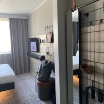 The hotel is on U6 and several S-bahn train station nearby, which makes it convenient traveling into Stuttgart city center. The hotel is AC-cooled, which is significantly for travelers during mid August In Germany as many hotels are not equipped with AC and room can be unbearably hot and uncomfortable. The hotel room is spacious and well designed. Lobby area is lively with a bar and social spaces. Overall, I enjoy the stay here and highly recommend it!