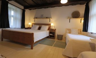 The one entering the house is immediately touched by It’s unique atmosphere. The stout walls are encapsulating more than a century old tradition and history. The house has been built in the late 1800s for the judge of the village. Entering the front-door we arrive to the anteroom. Moving further into the middle of the house we reach one of it’s specialties - the kitchen. The kitchen was originally working with a free chimney – meaning the smoke leaving to the air directly through a tunnel starting from the ceiling.