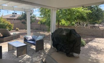 Newly remodeled home with large common area perfect for entertainment and gatherings. Tranquil, beautiful outdoor area with Arizona landscaping, pergolas, covered patio, BBQ and fire pit. 5 minutes from Arrowhead Town Center.About pets:No pets allowed.About checkOut:Check out before 11:00 AM.About children:Children allowed: ages 0-17.About checkIn:Check in after 2:00 PM.About smoking:Smoking is not permitted.About minBookingAge:Minimum age to rent: 35.About events:No events allowed.