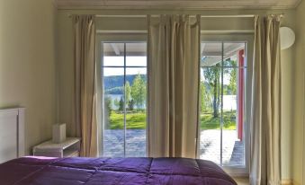 Gemütliches Haus und besonderes NaturgrundstückWir hatten eine sehr schöne und entspannte Woche in diesem gemütlichen Ferienhaus. Wir waren zu viert (2 Erwachsene und 2 größere Kinder) und für uns waren die drei Schlafzimmer ideal. Sollte man eine Reise mit 6 Personen planen ist zu berücksichtigen, dass die Schlafzimmer mit den Betten und Schränken ausgefüllt sind und keinen weiteren Raum zum ausbreiten bieten. Man sollte sich also wirklich mögen um sich gemeinsam im Wohnzimmer oder der Hochebene aufzuhalten.Das Haus war sauber, die Ausstattung sehr gut, es waren ausreichend Kochfelder vorhanden um auch mal richtig zu kochen.Ein Verbesserungsvorschlag wäre die Vorhänge um verdunkelnde Vorhänge zu ergänzen. Wenn man Feuer machen möchte steht in einem Schuppen Holz kostenfrei zur Verfügung. Das Grundstück ist wirklich sehr besonders. Der Spielplatz bietet sowohl für kleine als auch große Kinder etwas, besonders das Trampolin war ein Magnet. Trotzdem war es nie ein Problem sich dieses mit den Mietern der anderen Häuser zu teilen.Der Blick auf den See vom Wohnzimmer und der Terrasse ist sehr schön. Mit mehreren kleinen Buchten am See, Wasserläufen, Steg, Kanus und kleinem Birkenwäldchen ist das Grundstück sehr beeindruckend und man kann problemlos dort einen Tag verbringen ohne wegfahren zu müssen.Für urbanes Sightseeing ist die Lage nicht optimal. Dafür muss man zwischen 1-3h Fahrtzeit einplanen. Wenn man Natur erkunden möchte ist die Lage super.