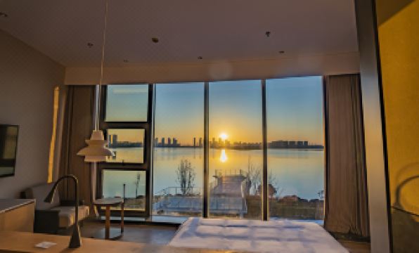 The lake view from the room was excellent. The windows were spotless and incredibly soundproof. In the afternoon, despite heavy thunder and rain, we only heard faint rumblings of thunder, and absolutely no sound of the rain itself. What's more, after dinner, when we took a walk downstairs, we discovered a rice noodle shop below that was constantly broadcasting pickup addresses for takeout orders, yet we couldn't hear a peep from our room.