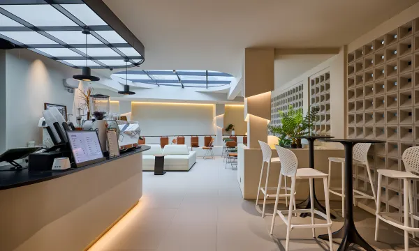 Environment: The guesthouse clearly separates public areas from guest-only areas. General visitors can only access the lobby, and the accommodation sections require a key card to enter and are separated by frosted glass doors, so privacy is not an issue. There's also a lounge area on the first floor with a double-height ceiling and some greenery, and the sunlight coming in makes it very comfortable. You can relax here if you don't want to stay in your room.