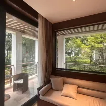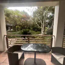 The hotel features a charming garden-style design, and the internal garden environment is beautiful. It's incredibly comfortable, whether you're just sitting around or enjoying a chat.