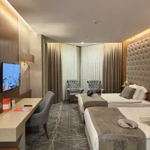 I had the worst experience ever! The staff are super rude and careless. We paid for double deluxe room and they gave us a connected room with full size bed! The hotel looks good from outside but terrible terrible customer service! Unfortunately this is the only good hotel in Tabriz but I don't recommend it.