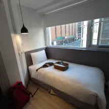 I stayed in a single room at a hostel located near Taipei Main Station. It features shared bathrooms and showers. The check-in process was very pleasant, and the staff were all excellent and professional. It also offers great value for money.