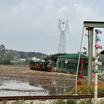 Outside is the train rice field, but it’s a pity that after harvesting, there is no golden color anymore!