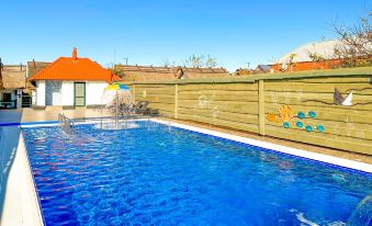 The guest courtyard has an outdoor swimming pool with sun loungers, a barbecue area, a playground and a cafe. There is also a restaurant at the hotel. A private car can be left in the parking lot.