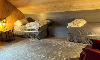The barn features two cozy and well-appointed bedrooms. The private master bedroom boasts a luxurious king-sized bed, offering a restful and peaceful sleep. The second bedroom features an open floor plan, making it ideal for families or groups. It includes two twin beds and one double bed, providing ample space for everyone to sleep comfortably.
