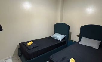 2 bedrooms: 2 single beds and 1 queen bed